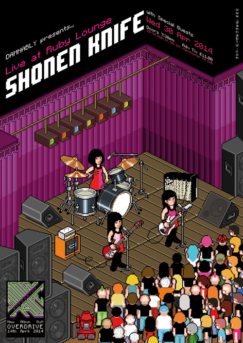 そう、少年ナイフの音楽には、英米を中心とする古今のすばらしいバンド、アーティスト のエッセンスがぎっしりと詰まっているのだ。少年ナイフ=スクール・オブ・ロックなのだ!ジャケット・デザインは、ソニック・ユースのツアーに同行するなど、海外でも高く評価されるノイズ・バンド、ソルマニアの活動でも知られる大野雅彦氏。ロック・テイストあふれるすばらしいデザインに仕上がっている。