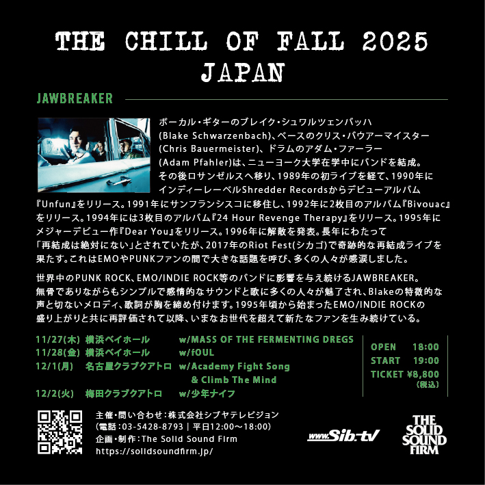 12/2(火)大阪 JAWBREAKER来日公演に出演決定!