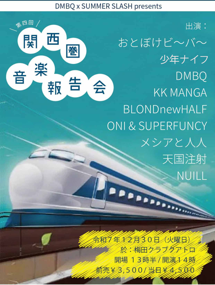 12月30日(火)、大阪・梅田クラブクアトロで開催されるDMBQ主催のイベント「関西圏音楽報告会」に少年ナイフの出演が決定しました🥁