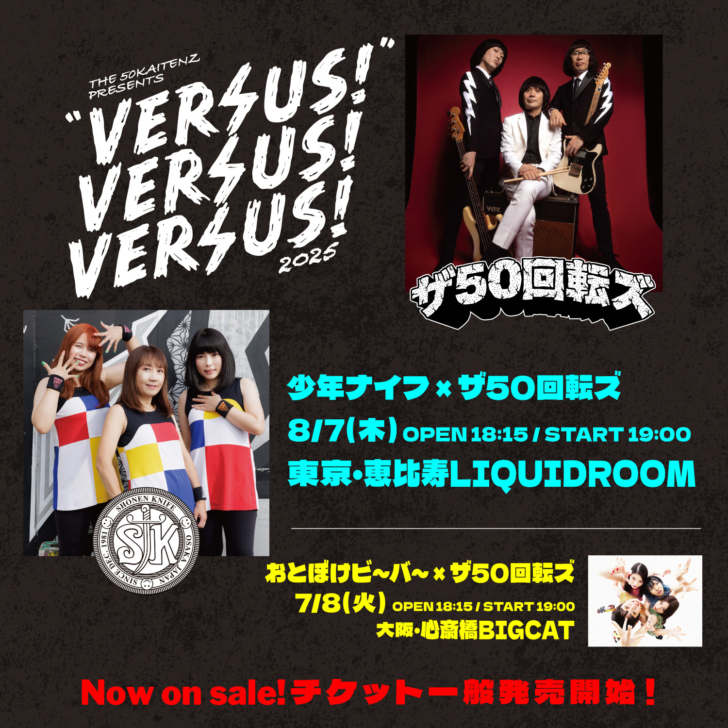 東京公演はフロア前方椅子席、後方スタンディングでワンマン、大阪公演は新ドラマー加入でさらに進化したTHE LET'S GO'sをゲストにオールスタンディングで開催します!お見逃しなく!!