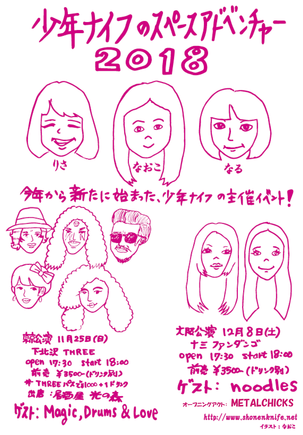 ■「Jump Into The New World」や「Rock’n’roll T-Shirt」等、近年のナンバーを中心に、「Twist Barbie」や「すしバーソング」等、少年ナイフ・クラシックスもばっちり収録。代表曲、人気曲を網羅したグレイテスト・ヒッツともいえる必殺のセットリスト!初お披露目となる、みんな大好きなニック・ロウの「Cruel To Be Kind」のカヴァーもうれしい!