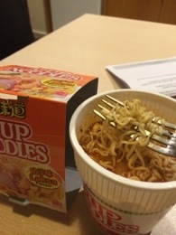 お昼は宿でラーメン作りました。これがかなりの美味しさ!I cooked ramen noodles.Yummy, yummy, yummy! |