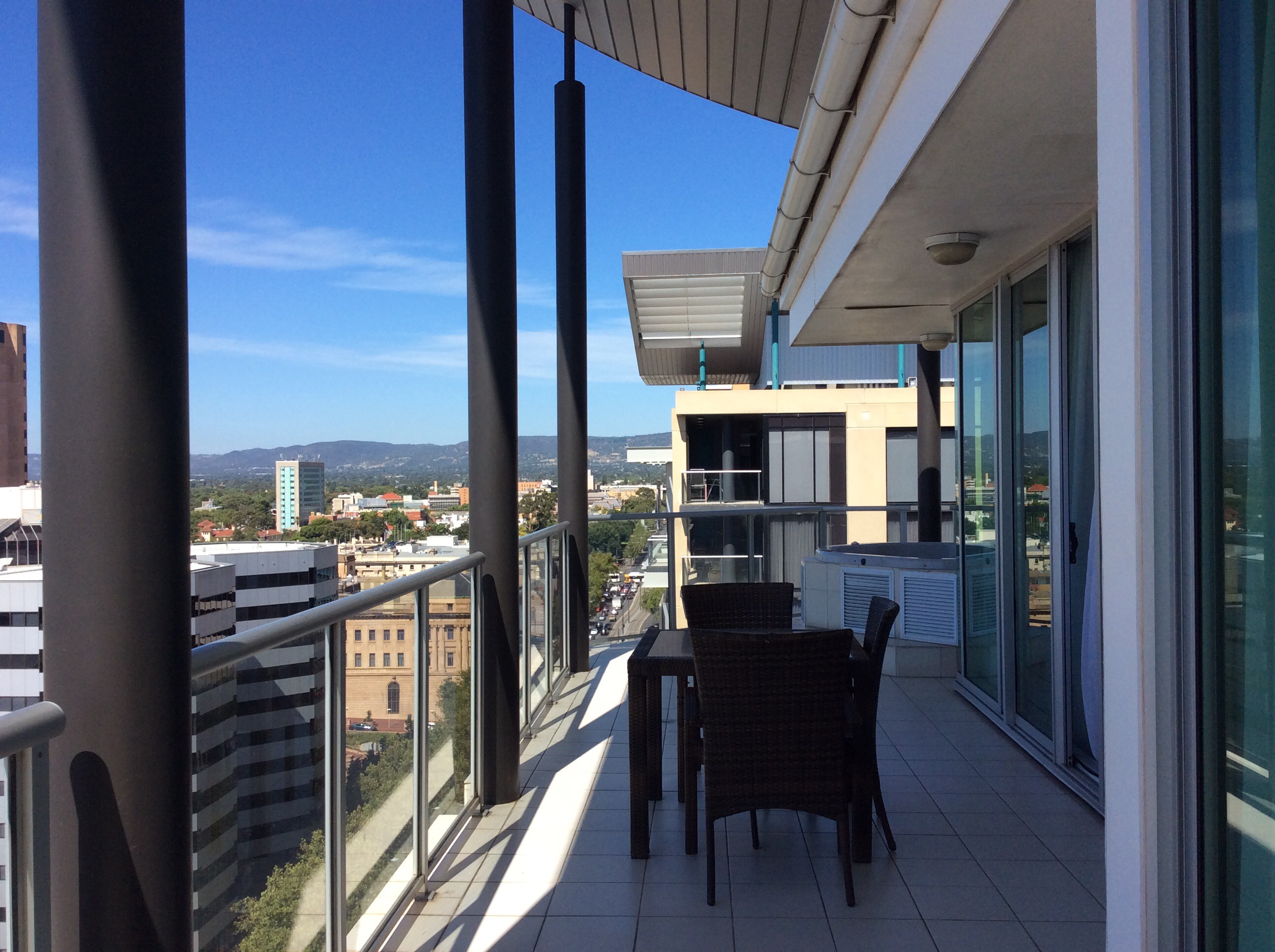 Then arrived at a hotel in Adelaide at 15:30. It was a fancy hotel. High-rise floor with porch. |