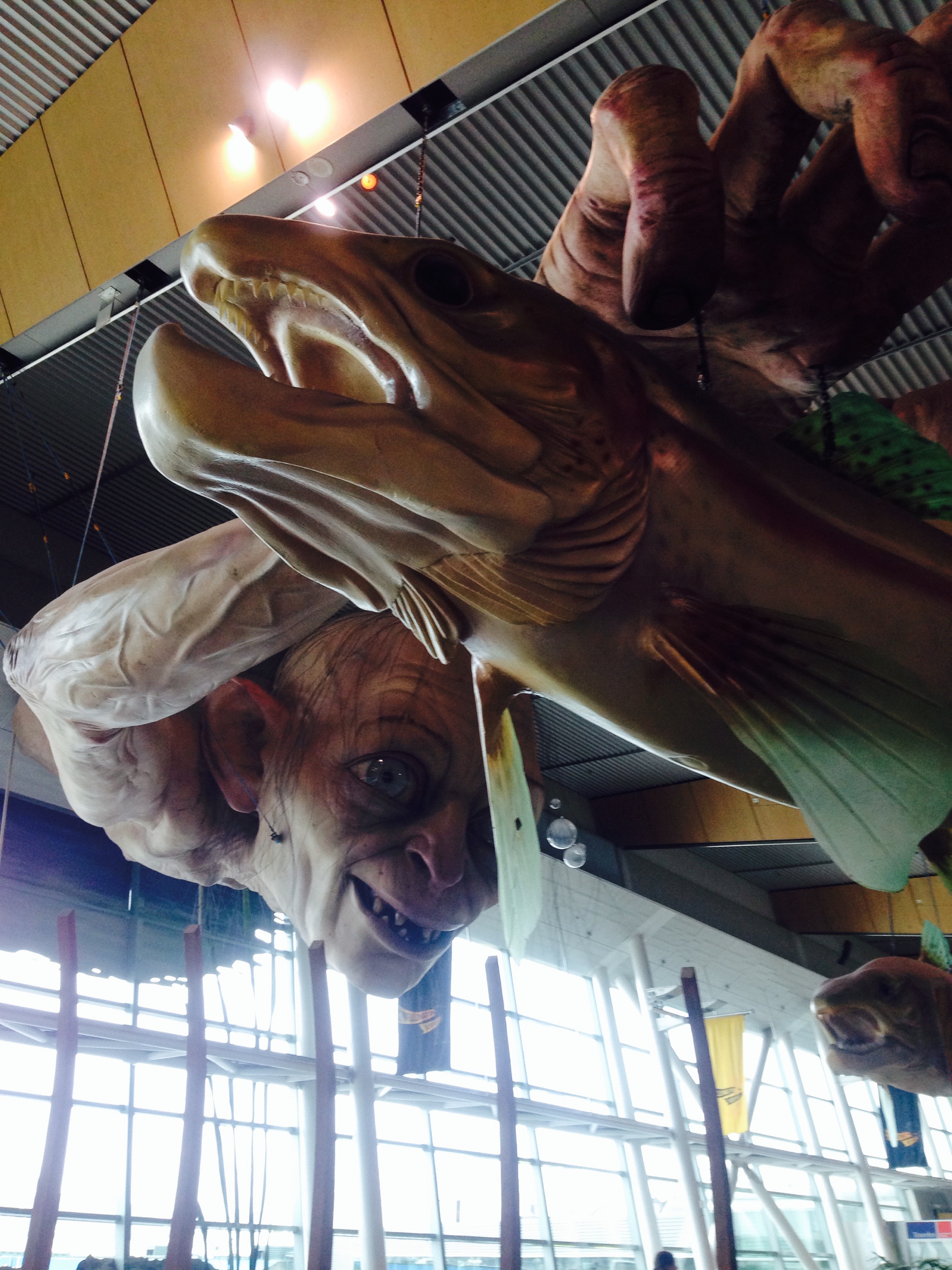 Left the hotel at 9:30. It took 15 minutes to Wellington airport by taxi. A giant monster welcomed us..... |